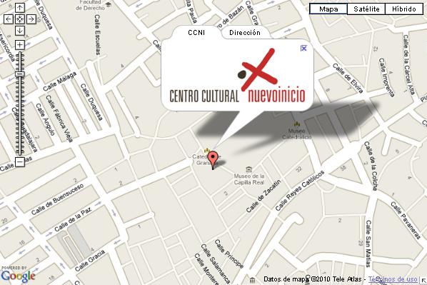 Centro Cultural Nuevo Inicio. Edificio Curia Metropolitana. Plaza Alonso Cano, s/n. Granada 18001 España Telf. +34 958 216323 Ver mapa por Satélite